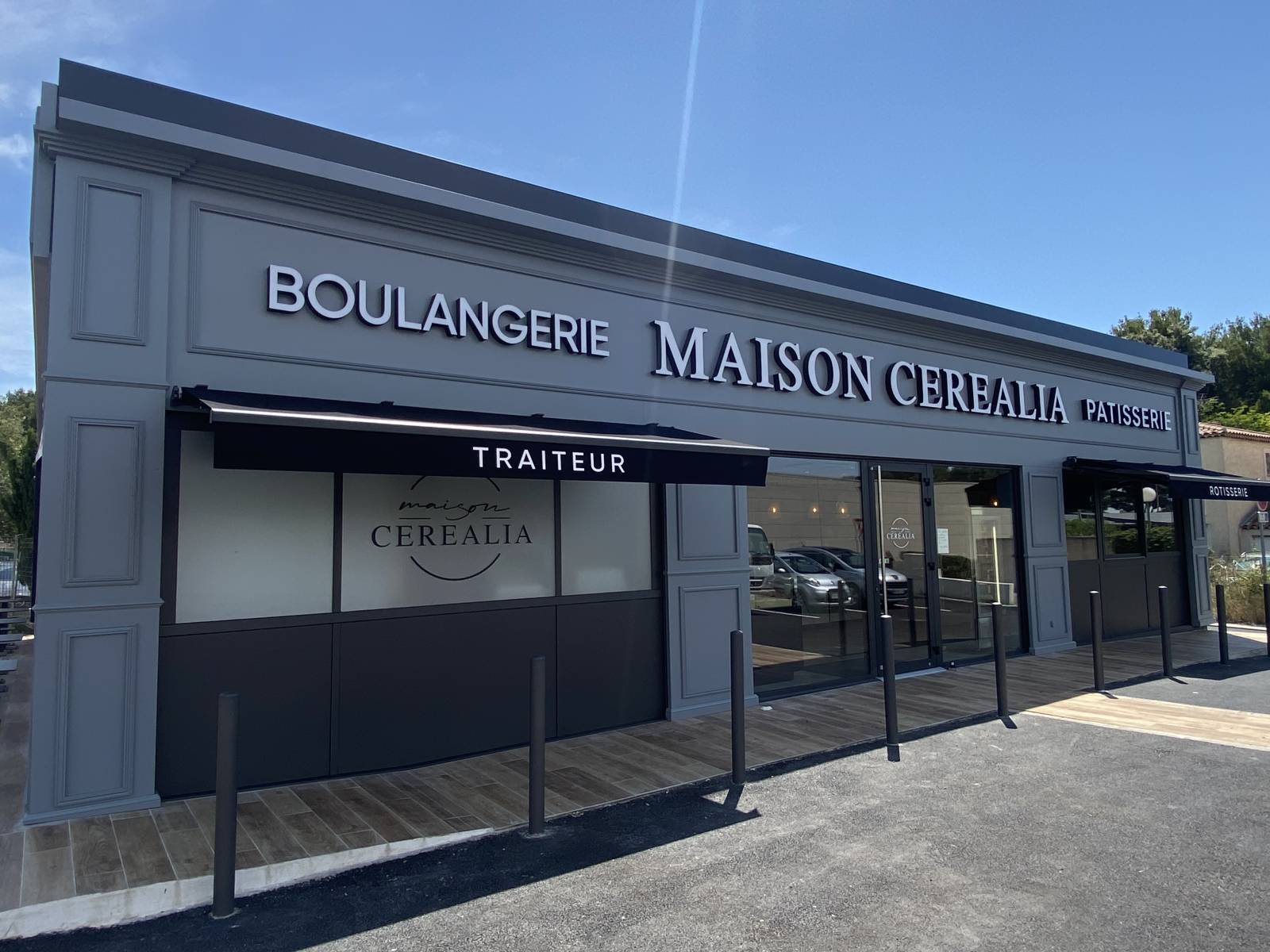 Pour Maison Céréalia à Istres, nous avons utilisé des matériaux résistants et un design soigné, mettant en avant l’image artisanale et gourmande de la boulangerie. Que ce soit pour une boulangerie, une pâtisserie ou un commerce, nous proposons des solutions adaptées et durables.